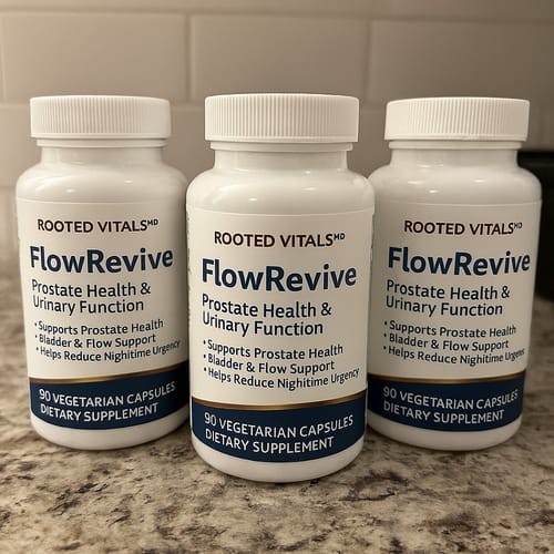 FlowRevive stops prostate suffocation at the source. It works in 3 different ways to restore blood flow and reduce swelling, usually within a few weeks of taking it to eliminate weak stream, constant urgency, and nighttime bathroom trips for good.